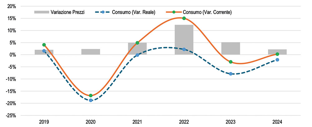 Nord America. Consumo arredi ufficio e andamento dei prezzi. Variazioni percentuali annue – Fonte CSIL