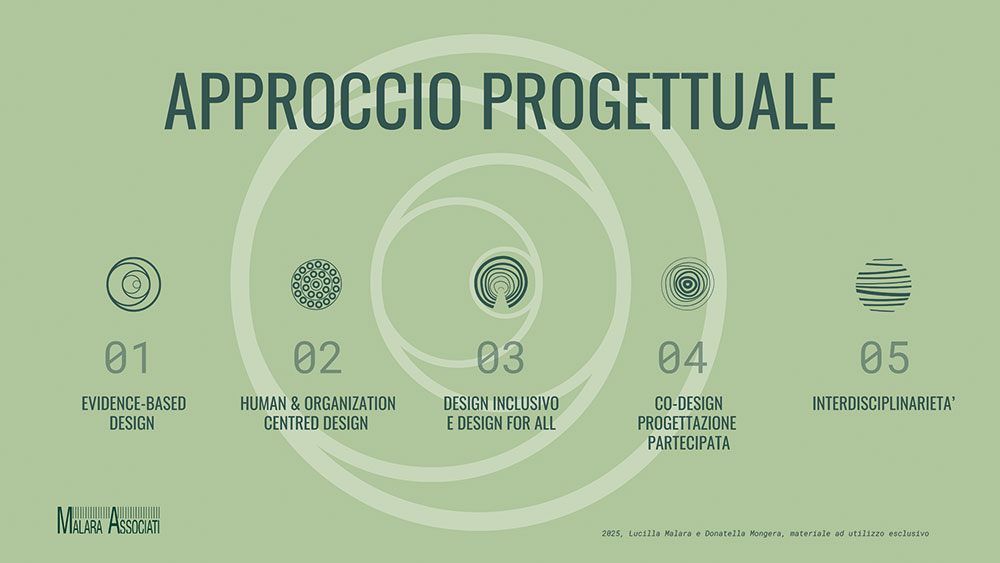 Analisi, progettazione e verifica: il metodo progettuale di Malara Associati si articola in tre macro-fasi, in coerenza con i principi della psicologia ambientale e architettonica