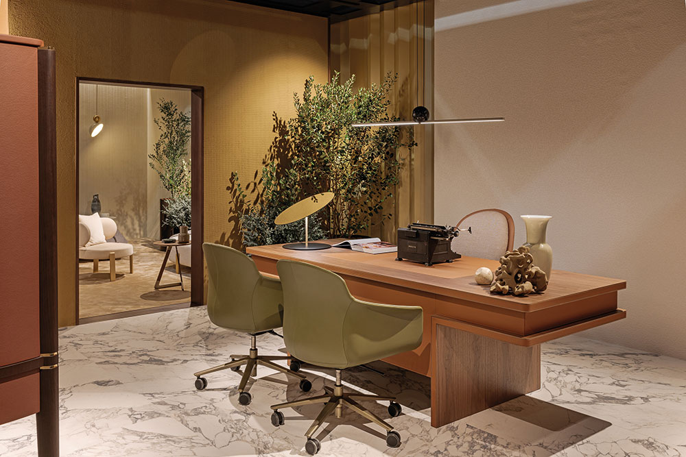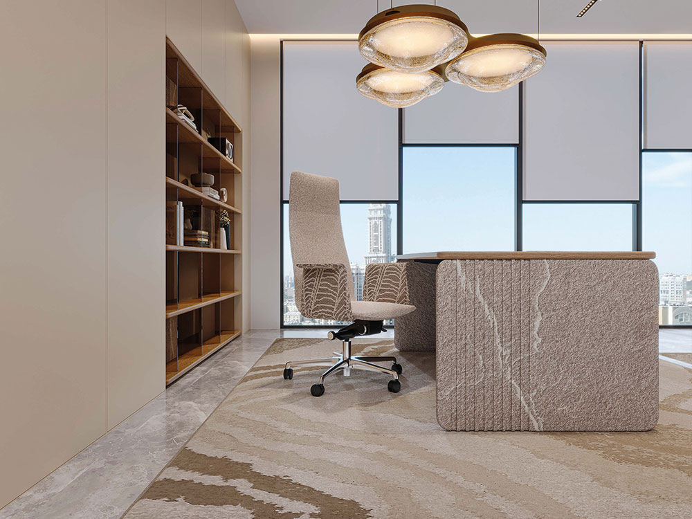 La prospettiva di uno studio di architettura di interni di Istanbul allarga e diversifica la riflessione spostando il focus sugli arredi. Per Murat Dede, fondatore e chief designer dello studio Urbanjobs: “Progettare per i manager significa trovare un equilibrio tra privacy, autorità e funzionalità. Una collezione direzionale deve essere senza tempo, ergonomica e adattabile; con un linguaggio raffinato basato su proporzioni, materialità e dettagli. Crediamo che i simboli tradizionali di potere e autorità si siano evoluti. Oggi la rappresentanza si ottiene meno attraverso la monumentalità e più tramite raffinatezza, comfort e sostenibilità. L’autorità si esprime non attraverso la scala, ma tramite l’onestà dei materiali, l’artigianalità e la cura. Finiture e dettagli non sono ornamentali: sono il linguaggio della rappresentanza. Dalla parete brandizzata della reception alle maniglie delle porte, ogni dettaglio contribuisce a una narrazione coerente di discrezione e raffinatezza. La materialità definisce l’atmosfera e trasmette i valori del marchio senza bisogno di parole”.