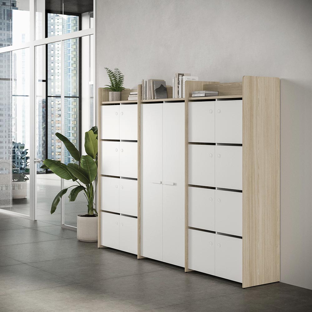 L’organizzazione è fondamentale per mantenere un flusso di lavoro efficiente e produttivo. Newform Ufficio e Progetto CMR interpretano questa esigenza con i locker e le librerie del sistema NE@T eco