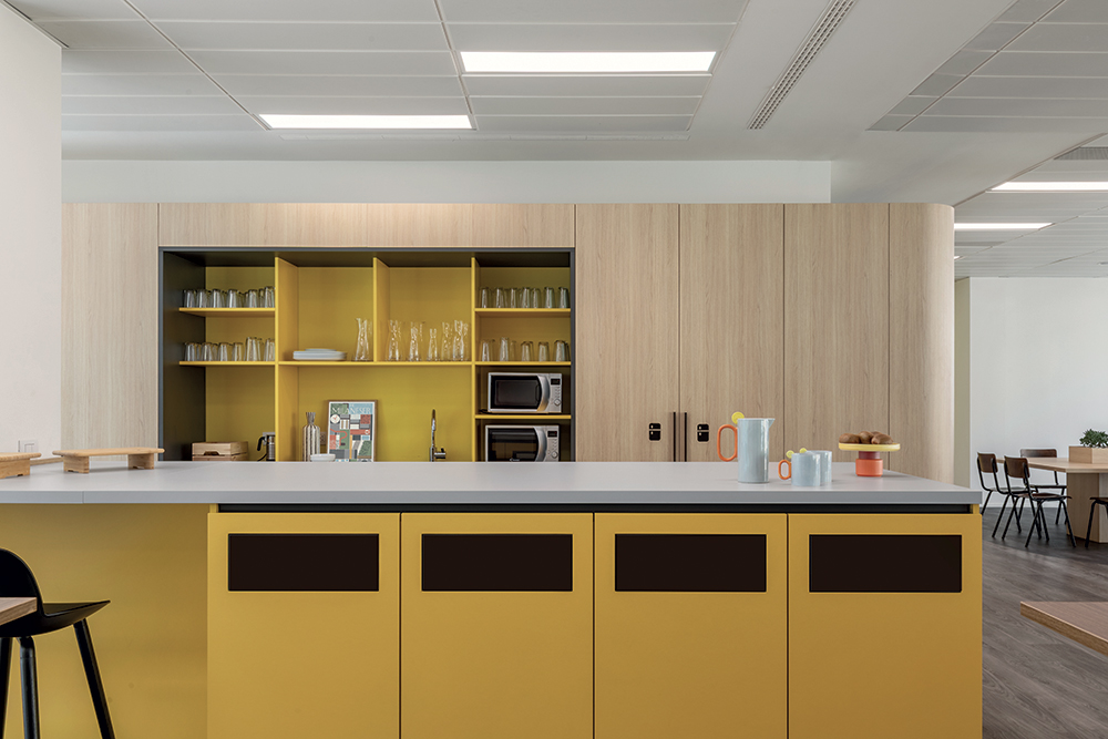 L’idea di collettività ha ispirato i progettisti anche nell’organizzazione spaziale degli uffici caratterizzati da un sistema di aree comuni e di passaggio che diventano luoghi di incontro informali che generano senso di appartenenza, riconoscibilità e comfort diffuso.