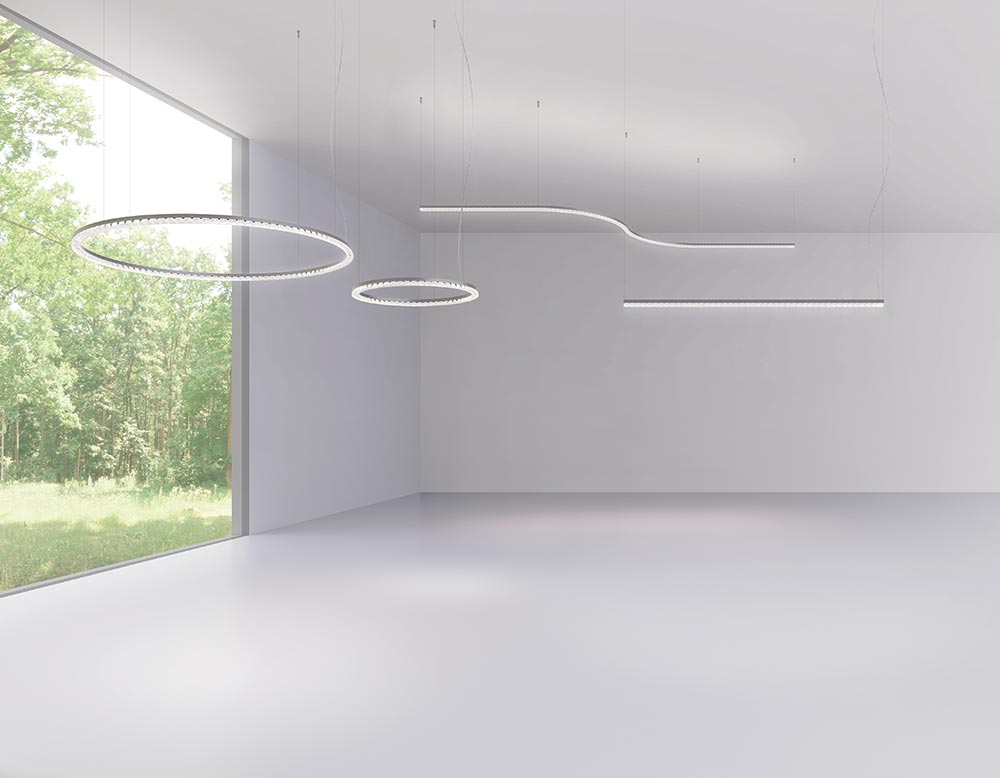 Risponde alle esigenze di leggerezza e flessibilità il binario ultrasottile Turn Around, che si configura come piattaforma aperta. Diversi moduli lineari, angolari e curvi possono comporsi con continuità elettrica e meccanica generando con la massima libertà forme sempre differenti. Alla libertà nel disegnare la luce nello spazio si affianca la possibilità di combinare performance differenti: all’interno del binario possono infatti essere inseriti un modulo lineare diffondente, moduli di ottiche sharping, spot o sospensioni. Tutto il sistema si sviluppa non solo nella versione incasso trimless, ma anche SMD e sospensione, solo con luce diretta o con un’emissione indiretta diffusa.