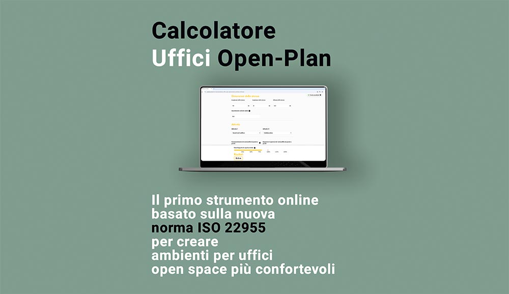 Basato su evidenze scientifiche e conforme allo standard ISO 22955, il Calcolatore per Uffici Open-Plan, sviluppato da Saint-Gobain Ecophon, permette di definire i fattori chiave per una corretta progettazione acustica degli open space